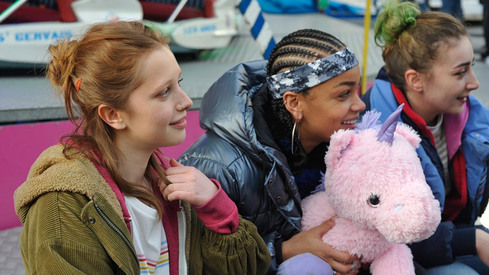 Les Filles du ciel brode avec une belle modernité sur le motif de la colère des jeunes filles. Mallorie, Jenna et Mona sont en colère contre la précarité qui les empêche de rêver grand, en colère contre les schémas qu’on veut leur imposer, en colère contre l’objectification de leurs corps. Des corps dont elles clament haut et fort l’appartenance, dont elles font des armes plutôt que des faiblesses. Héloïse, l’outsider, pose son regard, et par là même le nôtre sur cette petite communauté autogérée, faite d’entraide et de partage, rattrapée par le poids du dehors, mais aussi par les risques que peuvent entraîner l’appartenance à un groupe, son rôle protecteur mais aussi son rôle possiblement censeur. Le récit reste rugueux, observant avec tendresse la puissance de ces filles, sans en ignorer les aspérités, porté par les performances désarmantes de naturel des quatre jeunes comédiennes, qui trouvent là leurs premiers grands rôles.
