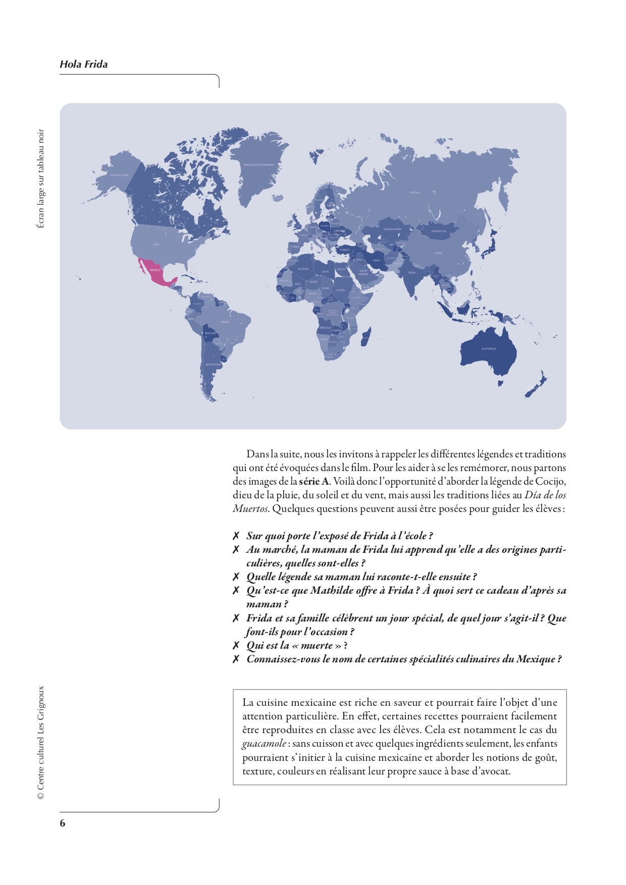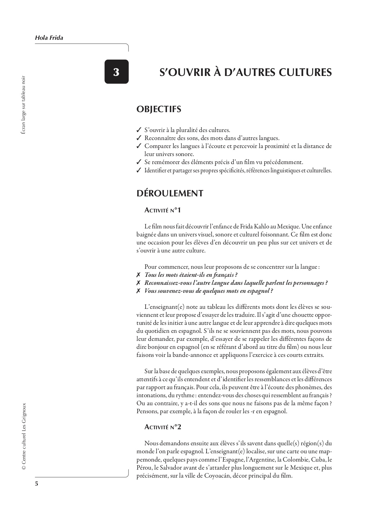Extrait du dossier pédagogique réalisé par Les Grignoux et consacré à Hola Frida! un film d'animation de Karine Vézina et André Kadi Canada/France, 2024, 1h22